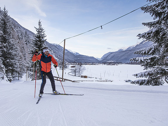 Die passende Ausrüstung zum Langlaufen leiht ihr euch am besten im 150 Meter entfernten Sportgeschäft. Zum Einstieg in die nächstgelegene Loipe (Hofer Böden/Windau) müsst ihr nur ein paar Meter weiter die Ötztaler Ache queren und schon kanns losgehen!